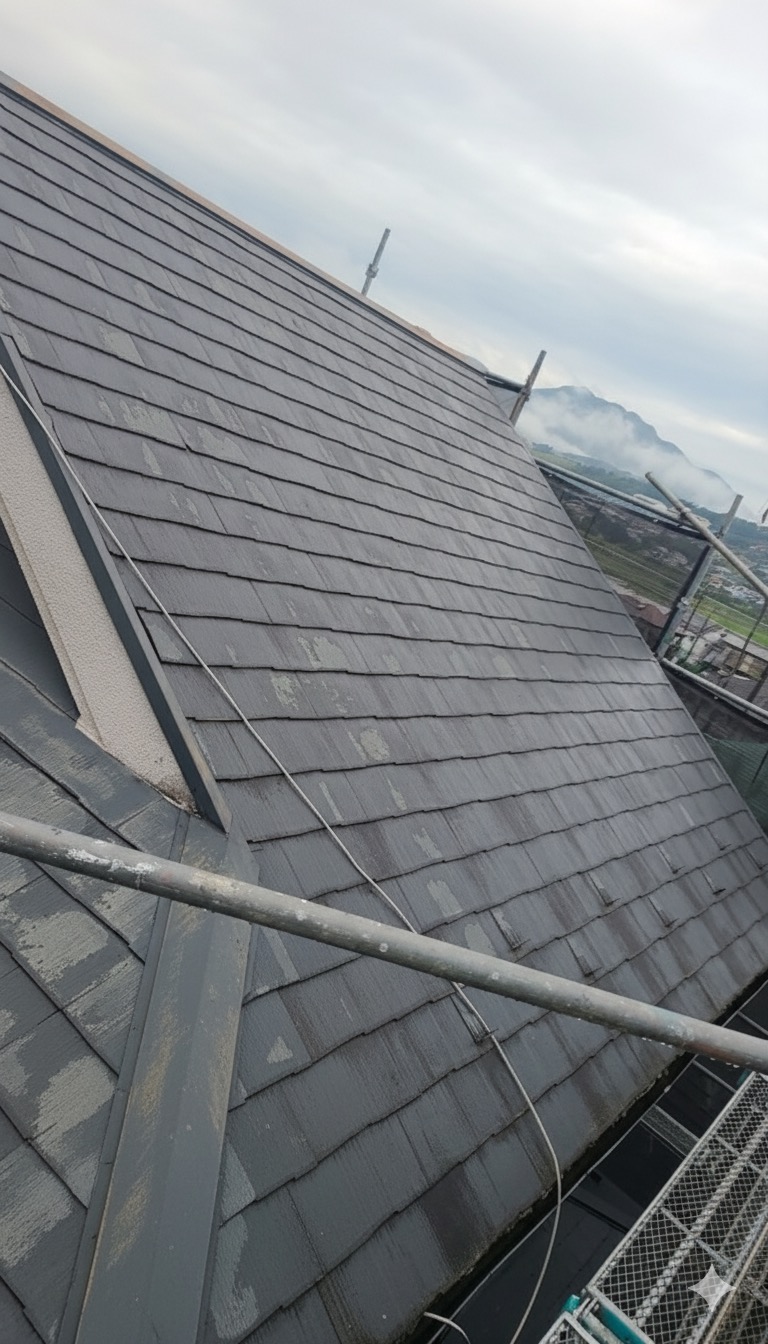 10年以上前に防水塗装をしていて塗り替え時だった為、板金貫板交換・屋根防水塗装・一部雨樋交換工事をしました!